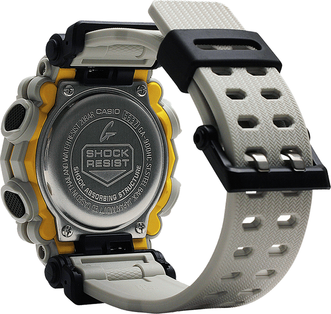 The new GA900HC-5A color model was designed under the theme of exploration of an unknown coastal region. This new model is based on the powerful GA900. The GA900HC-5A is made entirely of matte-colored tan resin bezel and black resin band that creates a calm and serene design. The HIDDEN COAST Theme Series is designed to go well with street fashions and other styles.
