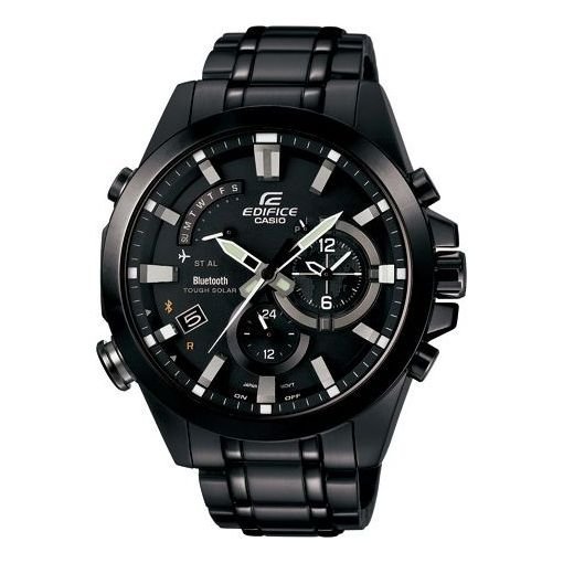 QUARTZ WATERPROOF SPORTS EDIFICE SOLAR POWERED STAINLESS STEEL STRAP MENS BLACK ANALOG EQB-510DC-1A